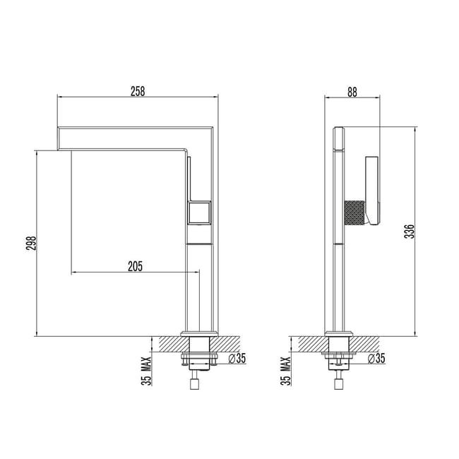 – Lavabo monomando de caño alto en latón cromado.