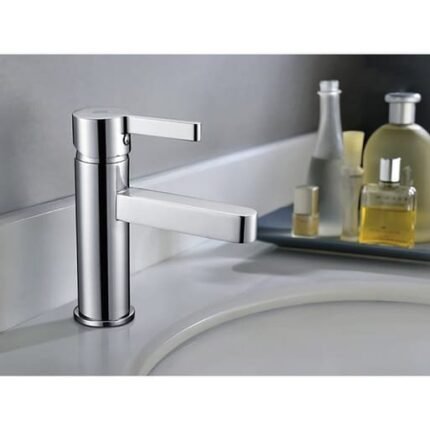 Grifo monomando lavabo caño alto.